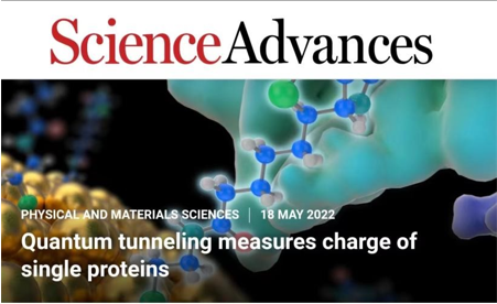 5月18日,《Science Advance》杂志在线发表了浙江大学光电科学与工程学院唐龙华课题组和英国帝国理工学院Aleksandar P. Ivanov 和 Joshua B. Edel等团队合作的题为“Measuring conductance switching in single proteins using quantum tunneling”的研究论文。该研究中利用量子隧穿结器件(quantum mechanical tunnelling probes)实现了单分子蛋白质的长时电导测量,观察到了室温、溶液环境中单个蛋白质分子的偏压依赖下电导动态响应。Science Advances官网以“Quantum tunneling measures charge of single proteins”进行了图片亮点报道。该器件技术有望用于探究蛋白质在生物过程中的实时构象与功能机制,在蛋白动态功能表征、生物光电子器件等领域具有重要应用价值。