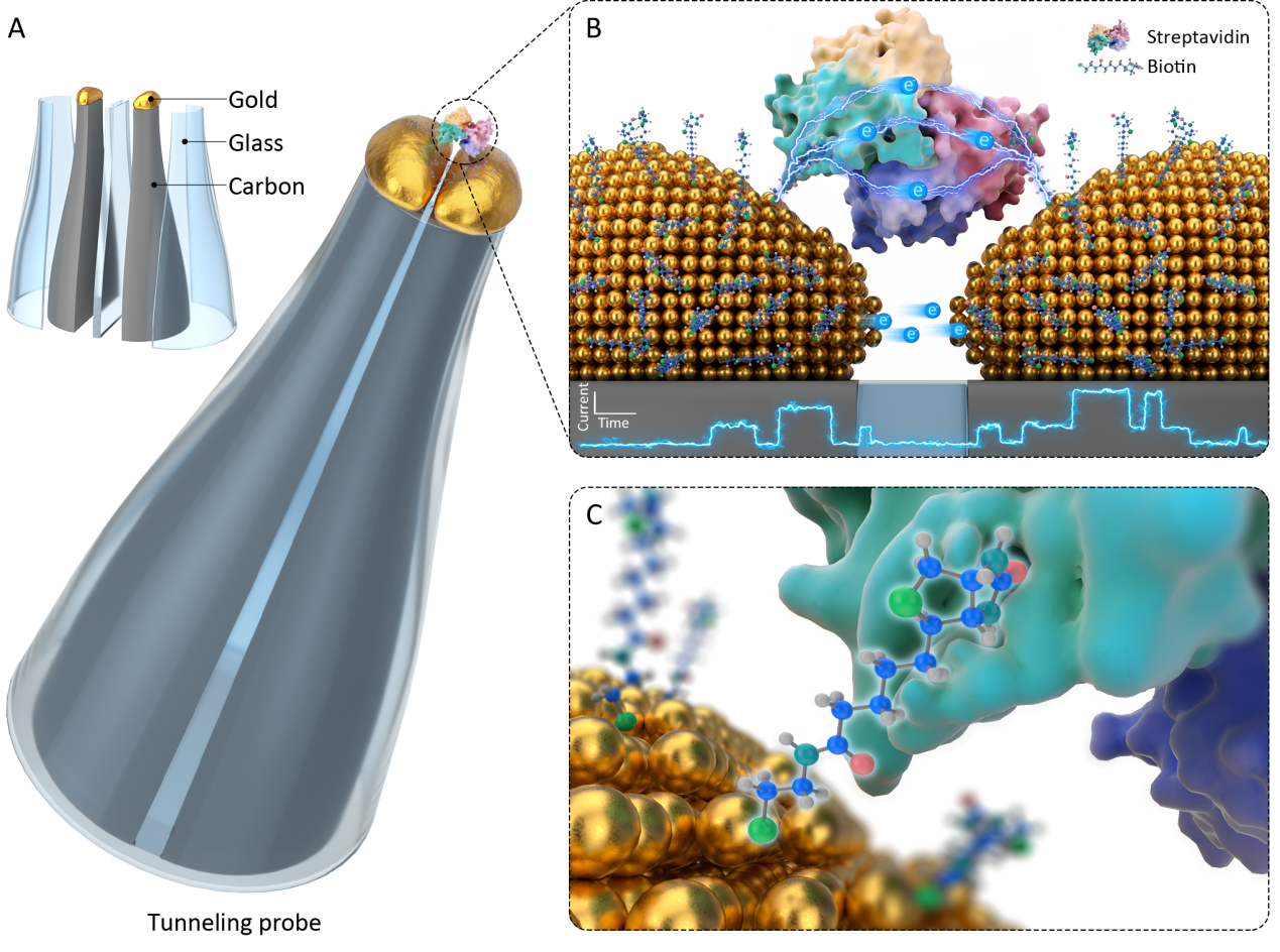 图2.利用隧穿结构筑的单分子蛋白质器件示意图(Science Advances, 2022, 8, eabm8149, DOI: 10.1126/sciadv.abm8149)