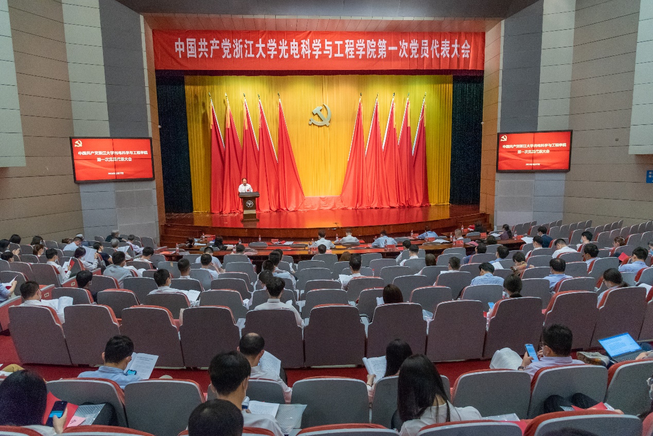 5月27日,中国共产党浙江大学光电科学与工程学院第一次党员代表大会在玉泉校区永谦剧场隆重举行。校党委副书记、纪委书记叶民莅临大会并发表讲话,党委组织部副部长、离休党工委书记、离退休工作处处长朱征到会指导。会议由学院党委副书记纪委书记赵传贤主持,学院108名党员代表出席大会,学院老领导、内设机构负责人代表等列席大会。