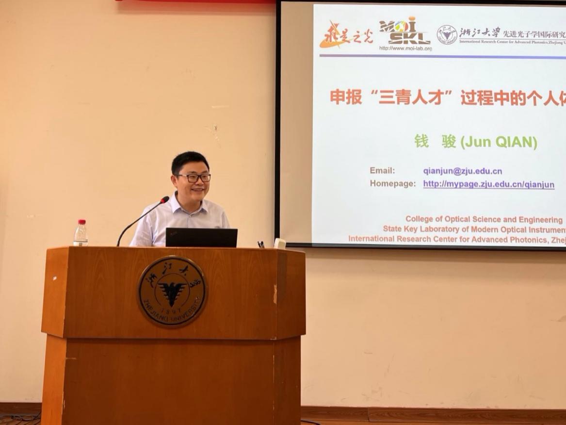 6月22日,光电学院“求是之光”青年人才发展论坛活动在教三440顺利举办。本次活动旨在加强青年教师交流,促进青年教师成长,并激励和启迪青年学者与光同行,共赢未来。论坛活动由光电学院院长戴道锌教授主持,邀请了钱骏教授、吴仍茂研究员两位优秀青年教师作专题报告。学院10余位青年教师参加了此次活动。