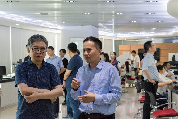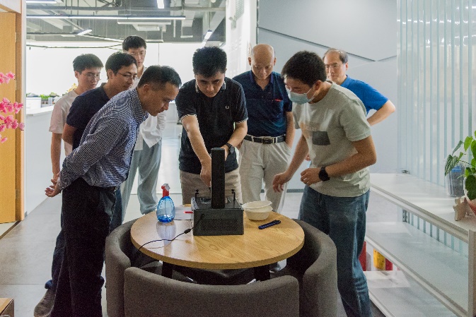 离开光熠,走访调研下一站为深圳市点睛创视技术有限公司。公司创始人是01级博士贺银波院友。点睛创视是一家从事微型显示、投影光学引擎及新型光学器件研发和生产的国家级高新技术企业,已成为业界核心的光学引擎提供商之一。除技术交流之外,贺银波院友还分享了创业过程的几次难关。他指出,学院做的工作是从01的突破和创新,而企业要完成从1N的实现与推广,衷心希望学院与企业能够深入交流合作。戴道锌院长高度评价了贺银波院友的创业成就,认为充分体现了浙大光电人求是创新的拼搏精神。他指出,良好的校企合作需要双方的技术团队全程参与研发的全过程,信息互通、团队融合。“不是合作共赢,而是共赢合作”,只有双方有共同的诉求,才能够实现深入合作。在人才培养方式上,戴道锌指出,学生的科研训练不能只停留在设计阶段,而要考虑实用性、可操作性,应鼓励学生对整个项目或工程有全局的把握,全过程参与到项目设计和实践中去。