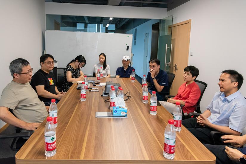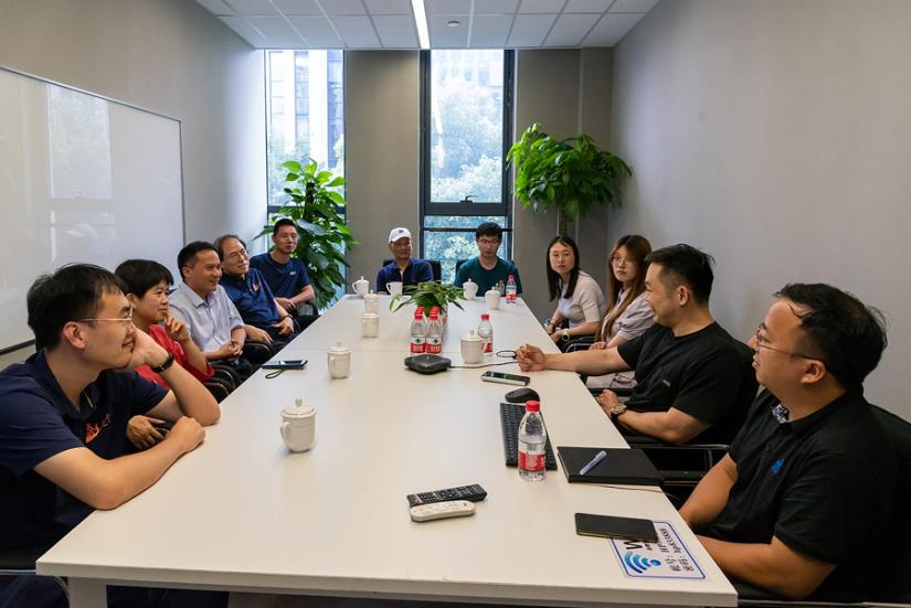 走访第二站,戴道锌一行来到易智达信科技有限公司。公司创始人之一是光电学院89级院友江明晖。该公司主营智慧通信业务,研发的产品惠及金融、网约车、物流、医疗等许多行业。戴道锌院长对江院友践行浙江大学求是创新精神,勇于拼搏创业的经历表示敬佩和赞赏。戴院长指出,经过多年发展,学院在光学领域的地位处于领先,但尚需开启新时代、奋进新征程,学院愿与广大校友企业加强交流合作,努力实现资源共享、优势互补、共谋发展,全力为国家的教育事业及光学工程学科的发展做出应有的贡献。