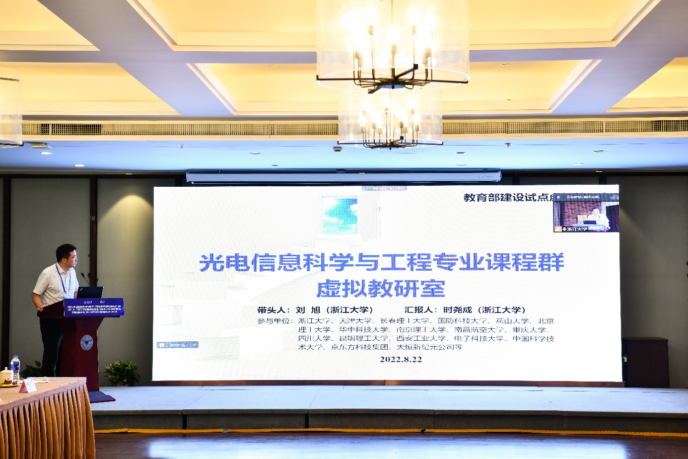 8月21-23日,2022年全国高校光电信息科学与工程专业教育教学改革前沿论坛暨2018-2022年教育部高等学校电子信息类专业教学指导委员会光电信息科学与工程专业教学指导分委员会第六次全体会议在浙江大学海宁国际校区举行。会议由教育部高等学校电子信息类专业教学指导委员会光电信息科学与工程专业教学指导分委员会(以下简称“光电教指分委”)、中国光学学会光学教育专业委员会主办,浙江大学光电科学与工程学院承办。会议以线上线下相结合的方式召开,光电教指分委成员、名誉委员、秘书处成员、协作委员、联络员、中国光学学会光学教育专业委员会成员及光电教指分委教研项目负责人等来自全国高校光电信息科学与工程专业(以下简称“光电专业”)的200余位专家学者参会。会议由光电教指分委秘书长、中国光学学会光学教育专业委员会主任委员刘向东主持。