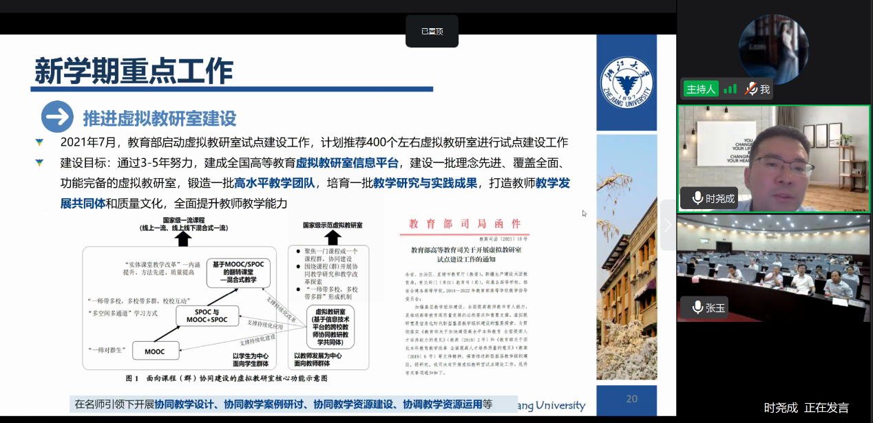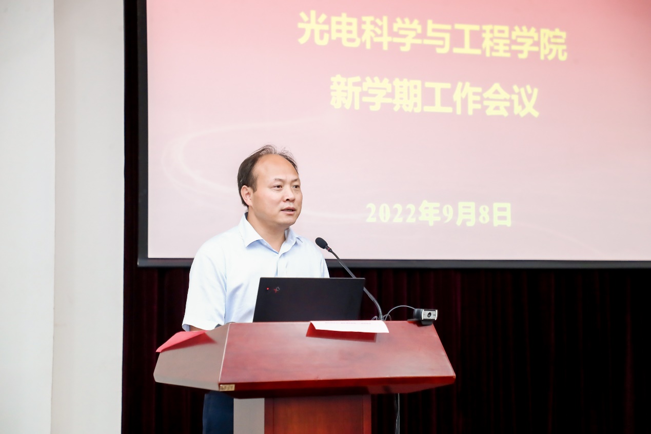 副院长时尧成作《深化教学改革、提升培养质量》报告。他从提升生源质量、深化专业内涵、加强实践培养、强化示范引领4个方面汇报了学院人才培养情况。新的学期将以完善专业课程知识体系、整理专业课程思政要素、探索本博一贯培养体系、搭建Student Lab平台、建设校内实践实训基地为重点,瞄准光电专业未来发展方向,探索一流专业建设模式与机制。