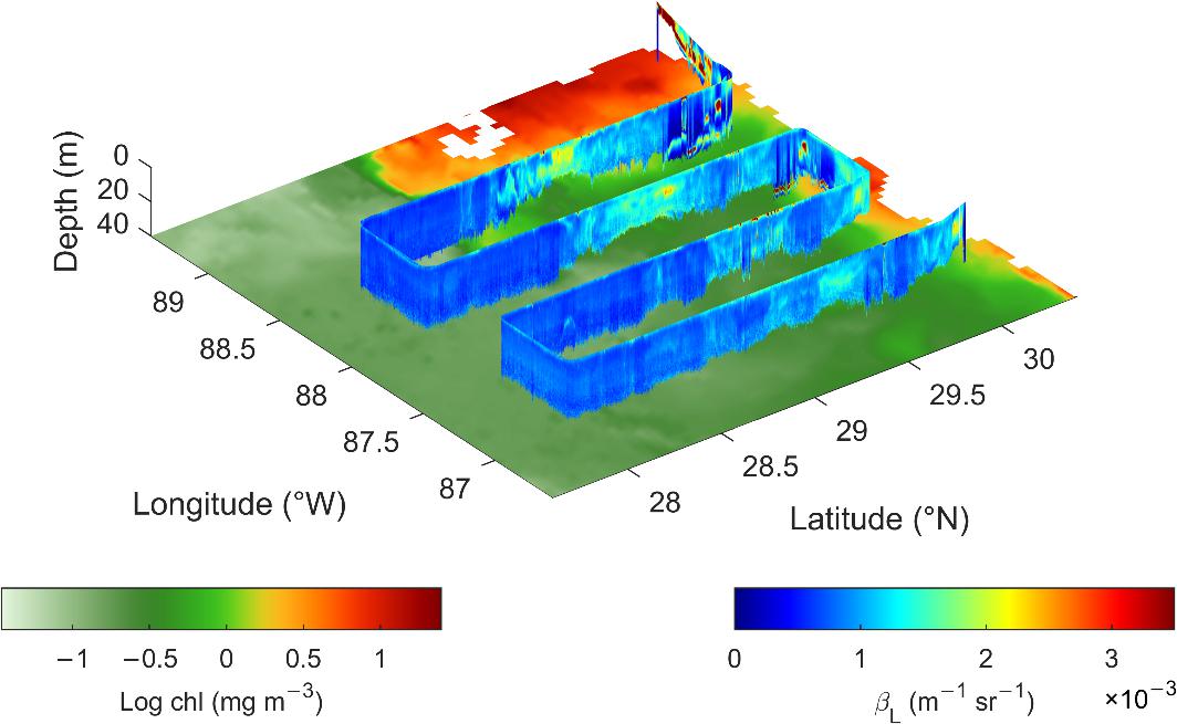 浮游植物薄层是海洋次表层水体中的一种特殊的浮游植物群体,在几厘米到几米的垂直厚度范围内具有很高的光合微生物浓度,并可在水平方向延伸数十公里。浮游植物薄层与碳固定、有机物转移和有害藻华等生物化学过程密切相关,因此,高效地探测浮游植物薄层并研究其特征和形成机理对海洋生态系统和生物地球化学的研究非常重要。然而,传统原位探测方法因为需要在水中探测,存在探测效率低、空间分辨率不足等缺点。激光雷达是一种主动光学遥感手段,具有高效的海洋剖面探测能力,广泛应用于鱼类、浮游生物、叶绿素浓度等诸多要素的探测。近期研究表明,海洋激光雷达在浮游植物薄层探测方面具有显著优势,但缺乏基于激光雷达的浮游植物层特征和形成机理研究。