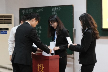 演讲之后,全体代表在监计票人的引导下以代表团为单位依次上台投票,经过公开唱票计票,选举产生了光电科学与工程学院第三十五届研究生会主席团,最终屠锡涛、于喆、杜宇成功当选,同时选举产生了浙江大学第三十五次研究生代表大会代表与浙江大学第二十一次博士生代表大会代表。