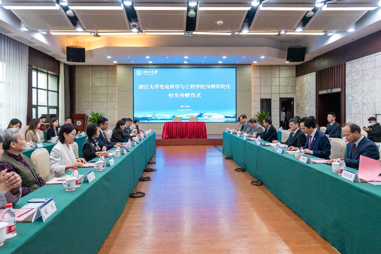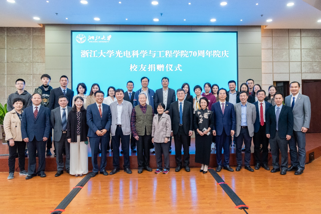捐赠方代表,浙江大学发展联络办、浙江大学教育基金会、浙江大学光电科学与工程学院、浙江大学嘉兴研究院等相关单位负责人以及师生代表等35人参加仪式。