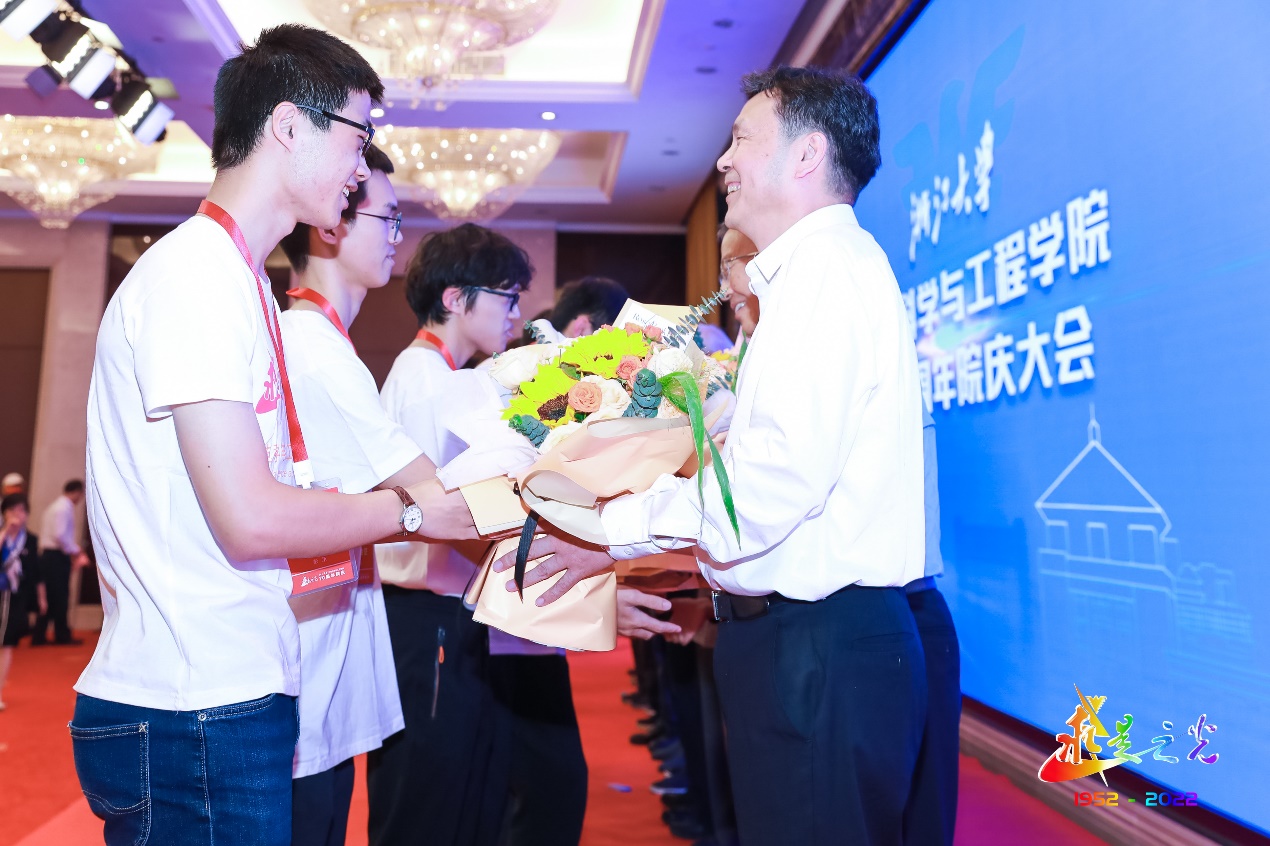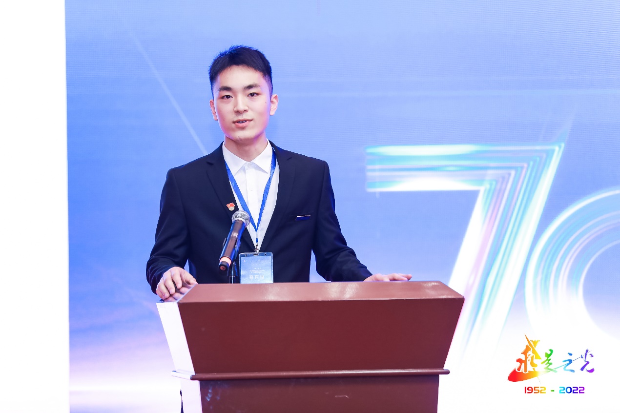 学生代表、浙江大学光电学院2018级本科生、2022级直博生屠锡涛表达了对于母院培养的感恩之情,得益于光电学院兼容并蓄的文化,自强不息的精神,他期待能够在接下来的博士学习中不负期待、踏实研学、完成突破,并号召青年学生争做科技星火的“追光者”,强国道路上的“奋进者”,“求是之光”精神的“传承者”。
