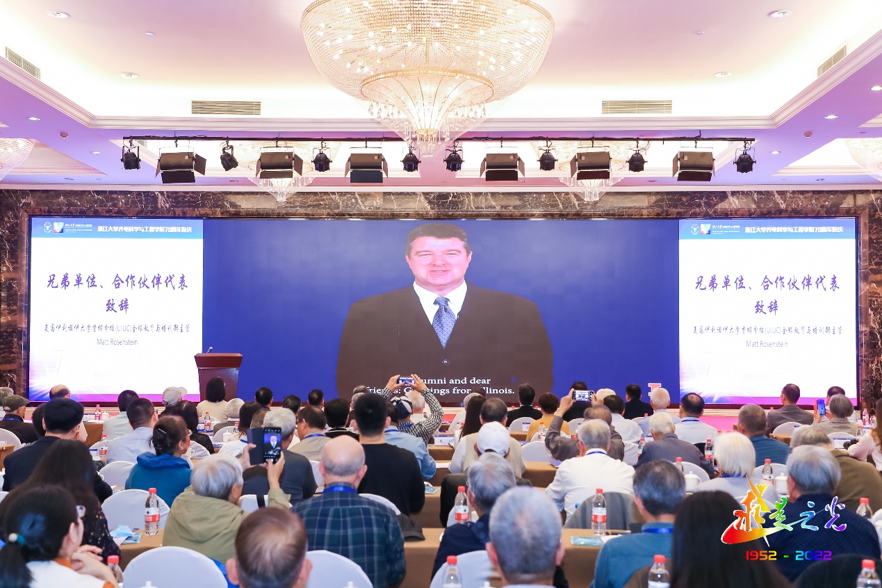 77级校友、中科院院士叶志镇教授通过视频表达了对学院70周年庆典的祝福,他围绕教书育人和科研创新的成长经历,殷切期望青年要有“一辈子只做一件事情”的坚守,不断攀登科学高峰。78级校友、美国BOS PHOTONICS公司总裁兼首席科学家顾波回忆了求学岁月和恩师教诲,表达了对母校培养的感恩之情,“永远争第一”的光仪精神一直激励着自己在激光领域深耕,也能够为国家做出一些贡献。80级校友、中国空间技术研究院卫星总设计师曹海翊结合自己多年科研工作经历,勉励青年们传承前辈精神,在祖国最需要的领域钻研进取、发光发热,在服务国家需求中实现人生梦想。06级校友、杭州纤纳光电科技有限公司CEO姚冀众表达了作为浙大光电人的自豪感,在创新创业领域取得的成绩离不开母院的悉心培养,衷心祝愿学院站在新起点、实现新跨越,不断创造新的辉煌。