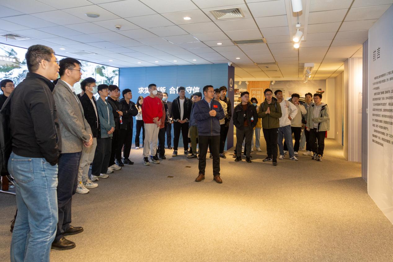 到达目的地以后,在上海技物所综合管理部主任牛相林的带领下,同学们参观了技物所建所60周年成果展示厅。跟随着牛主任的步伐,同学们依次参观了技物所的各项研究成果和设备,了解到技物所的发展历程、各实验室的技术特点及所获荣誉,对研究所面向国家重大战略需求的“基础前沿—核心组部件—系统集成”完整研发体系进行了详细介绍。