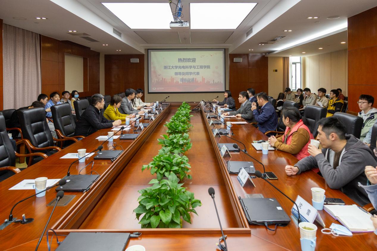 刘东副院长进一步介绍了浙大光电学院与上光所的渊源,他表示学院与上光所的合作由来已久,应当继续长期保持,同时进一步在各自优势领域协同开展人才培养、科研攻关、科技成果转化,共建产教融合创新平台。