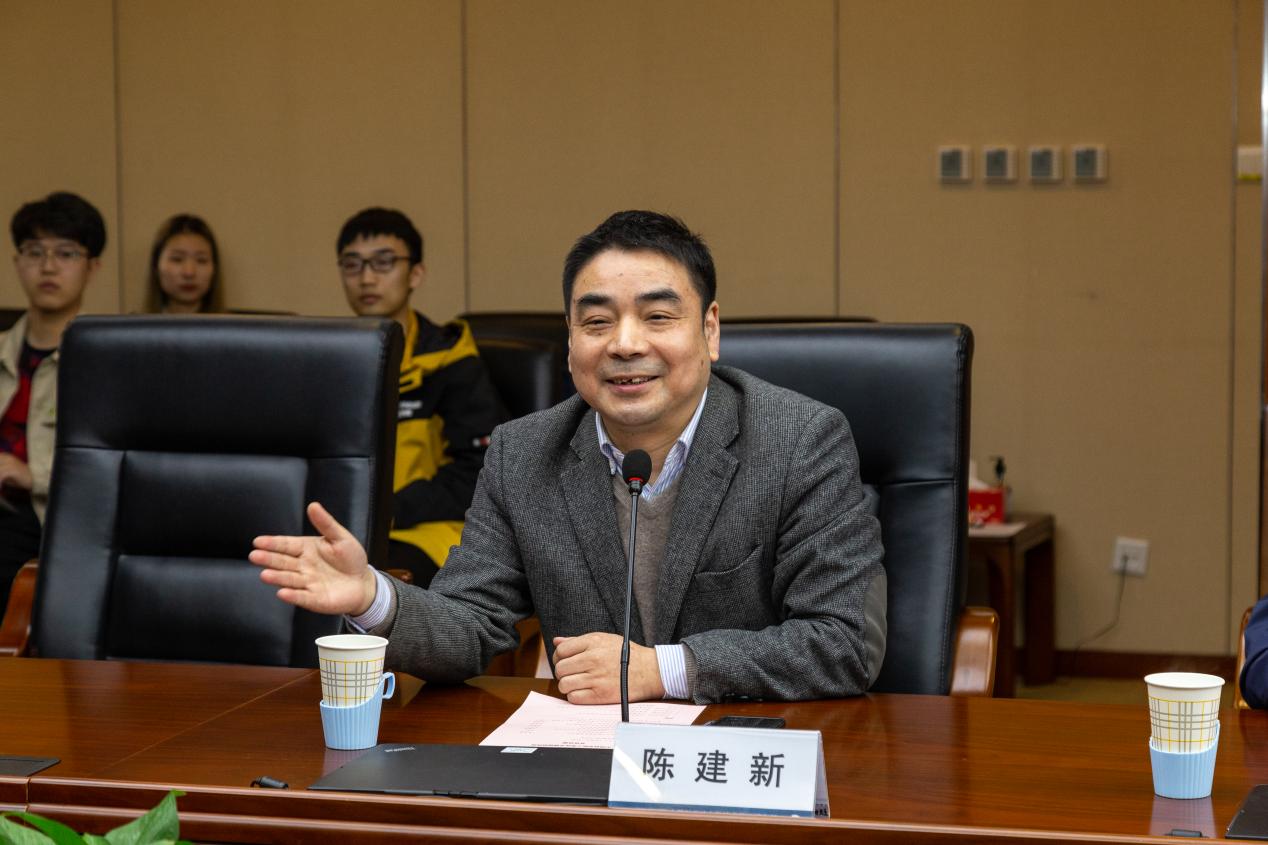 参观结束以后,光电学院师生一行来到会议室,与技物所的领导老师作了深入友好交流。首先,副所长陈建新对光电学院师生的到来表示热烈的欢迎,并简要介绍了技物所的发展历程,同时希望技物所能加强与浙大光电学院的合作,实现互利共赢,共同进步。