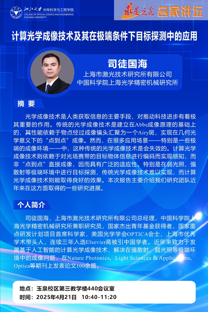 “求是之光”名家讲坛——计算光学成像技术及其在极端条件下目标探测中的应用