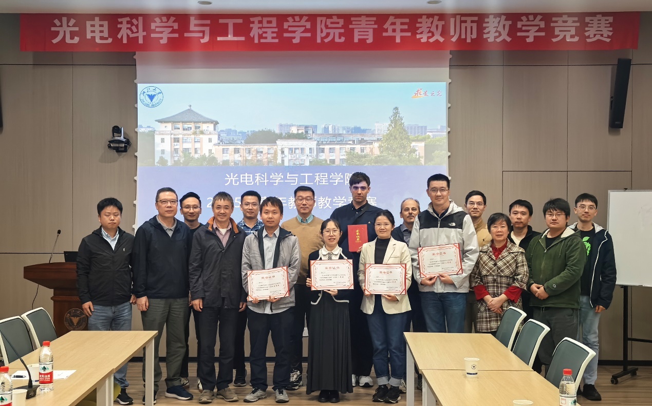 10月23日下午,光电学院2025年青年教师教学竞赛在玉泉教三440会议室顺利举行。本次竞赛以“聚焦课堂,追求卓越”为主题,特邀本院资深教师李晓彤、叶辉、白剑和徐海松教授担任评审专家。经教师自主报名,学院共7位青年教师参赛,10余位教师观摩学习。