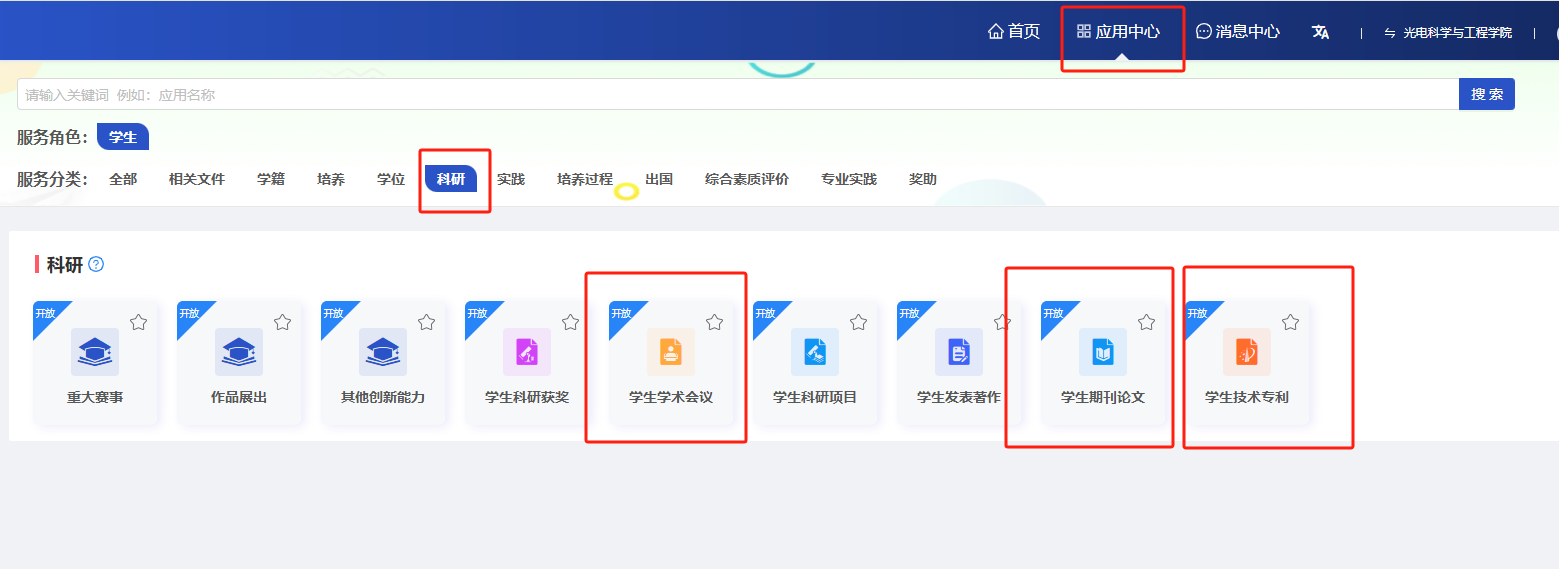 “科研成果(用于学位申请的会议论文也要录到期刊论文版块)”。上述纸质材料请扫描后,合并上传到对应成果的“其他证明材料”。