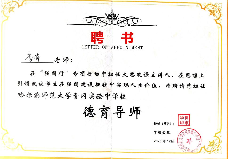 2025年12月4日,一场别开生面的“大思政课”科普活动在黑龙江省绥化市青冈县哈尔滨师范大学附属青冈实验中学隆重举行。活动由教育部思想政治工作司策划的2025“强国行”系列实践活动,浙江大学光电科学与工程学院光学成像与检测技术研究所教工支部副书记李奇老师受邀作为主讲嘉宾,为师生带来了一场深入浅出的天文科普讲座。